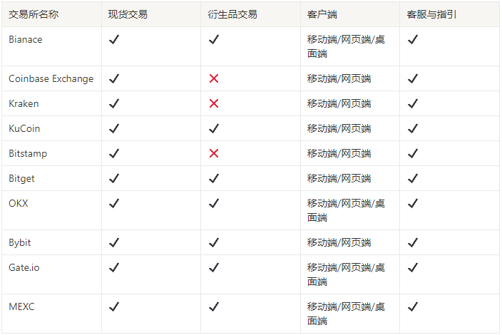 我们对不同中心化交易所的功能进行了体验与总结,结果如图: