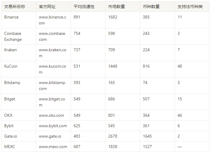 参考CoinMarketCap的交易所现货综合排名。CoinMarketCap的综合排名信息是根据交易所流量、流动性与交易量等信息进行的综合排名,可以在一定程度上反应某个中心化交易所的规模,具有一定的代表性。我们选择了综合评分较高的十所中心化交易所作为研究对象,下面为十所中心化交易所的排名与简介信息。